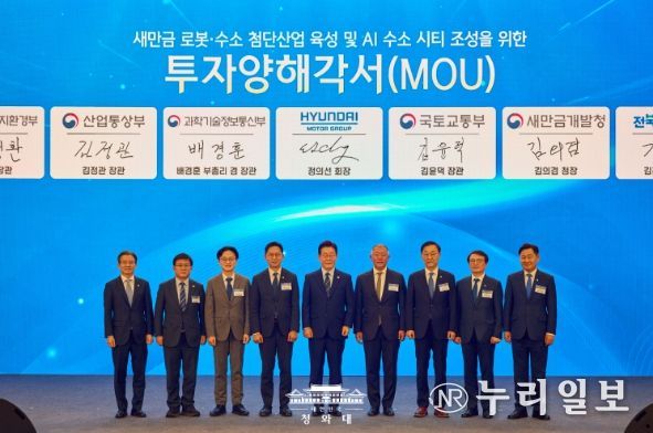 (누리일보) 이재명 대통령은 27일 새만금 로봇·수소·AI 시티 투자 협약식에 참석해 "현대자동차그룹의 혁신 역량 그리고 풍부한 자원이 합쳐진다면 새만금은 최적의 시너지를 발휘하는 기회의 땅이 될 수 있을 것으로 믿는다"고 밝혔다.