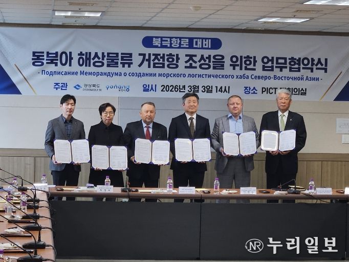 (누리일보) 경상북도는 2026년 3월 3일 포항영일신항만 주식회사(PICT) 대회의실에서 북극항로 시대를 대비해 영일만항이 동북아 해상물류 거점항만으로 발돋움하기 위한 다자간 업무협약을 체결했다.