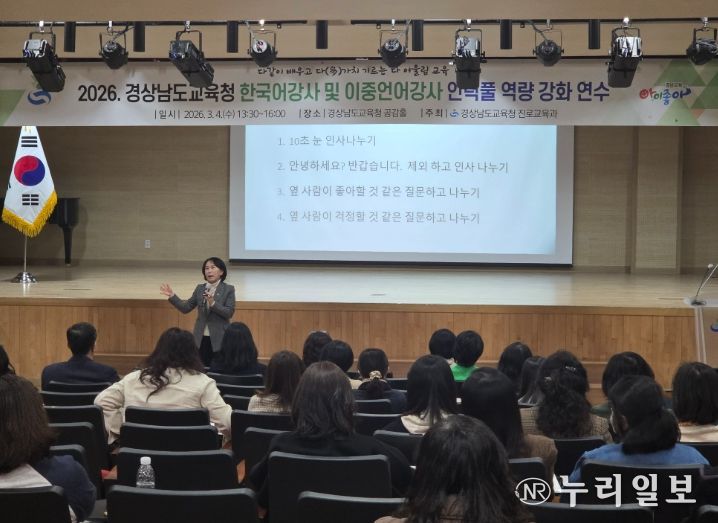 (누리일보) 경상남도교육청은 4일 본청 공감홀에서 이주배경 학생을 체계적으로 지원하기 위해 '2026년도 한국어 강사 및 이중언어 강사 인력풀 역량 강화 연수'를 열었다.
