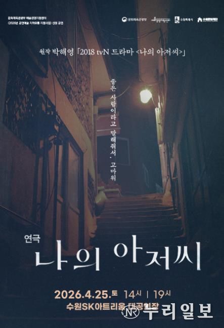 (누리일보) 수원문화재단 수원SK아트리움은 오는 4월 25일, 수많은 시청자의 인생 드라마로 손꼽히는 tvN 드라마 원작의 연극 ‘나의 아저씨’를 대공연장 무대에 올린다고 밝혔다.