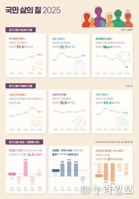 보고서에서는 2025년 12월 말 기준으로 지표가 전기 대비 개선 또는 악화됐는지에 대한 진단을 통해 우리 사회 삶의 질 변화를 보여준다.