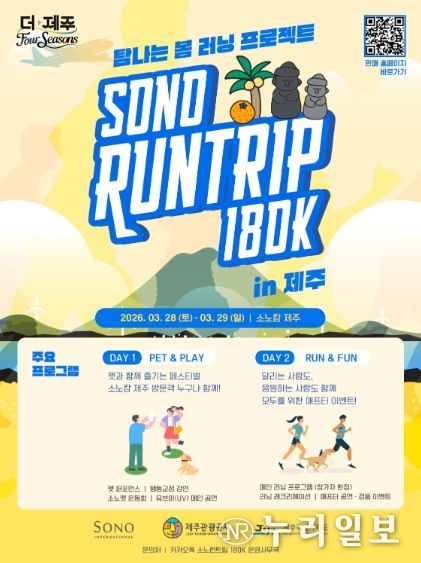 (누리일보) 제주관광공사는 봄 시즌 제주여행 활성화를 위해 반려동물 동반 여행 수요 확대에 대응하고 체험형 관광 콘텐츠를 강화하기 위해 소노인터내셔널과 협업을 통해 오는 3월 28일부터 29일까지 소노 런트립 180K에서 펫 동반 러닝 프로그램을 운영한다고 밝혔다.