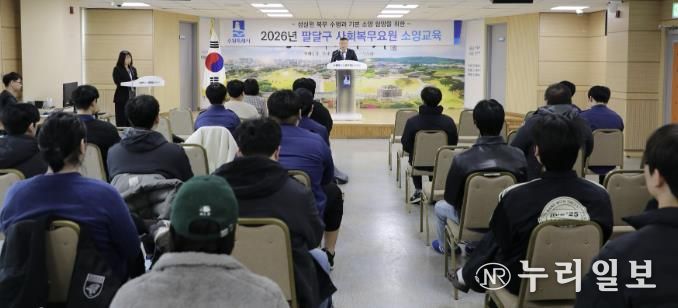 (누리일보) 수원시 팔달구는 지난 5일 팔달구청 대회의실에서 사회복무요원 전원을 대상으로 2026년 상반기 소양교육을 실시했다.