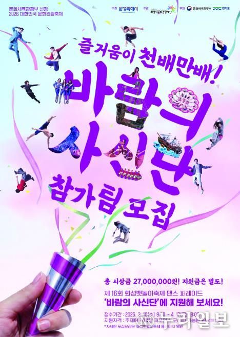(누리일보) (재)화성시문화관광재단은 제16회 화성 뱃놀이 축제의 주인공이 될 ‘바람의 사신단 댄스 퍼레이드‘경연 참가팀을 모집한다.