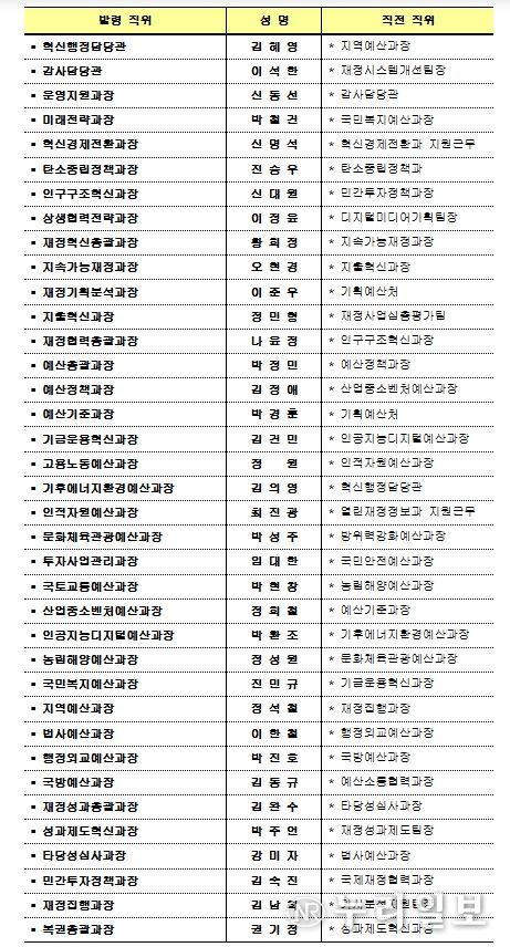 (누리일보) 기획예산처는 대내외 정책환경 변화에 능동적으로 대응하고, 조직의 혁신과 활력을 제고하기 위해 2026년 과장급 정기인사를 단행했다.