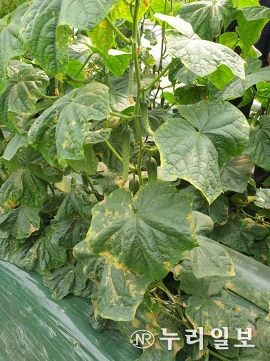도 스마트농업본부에 따르면 최근 기온 상승으로 낮 동안 시설하우스 측창을 개방하는 농가가 늘었는데, 이때 스마트팜 내 갑작스럽게 찬바람이 유입되면 오이 등 박과류 작물이 스트레스로 인한 ‘급성 노균병’에 걸릴 수 있다.