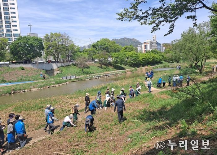 이번 활동은 번식력이 강해 토종식물의 생육을 저해하고 하천 생태계 균형을 훼손하는 생태계 교란식물을 시민과 함께 제거하는 민관 협력 사업이다.
