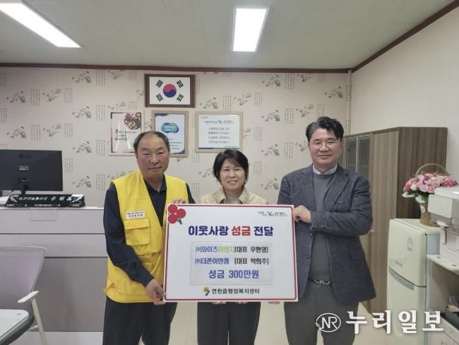 (누리일보) 연천군 소재 ㈜와이즈이앤지와 ㈜더존이엔엠은 지난 9일 연천읍 행정복지센터를 방문해 관내 어르신들을 위한 경로잔치 준비에 써달라며 성금 300만원을 기탁했다.