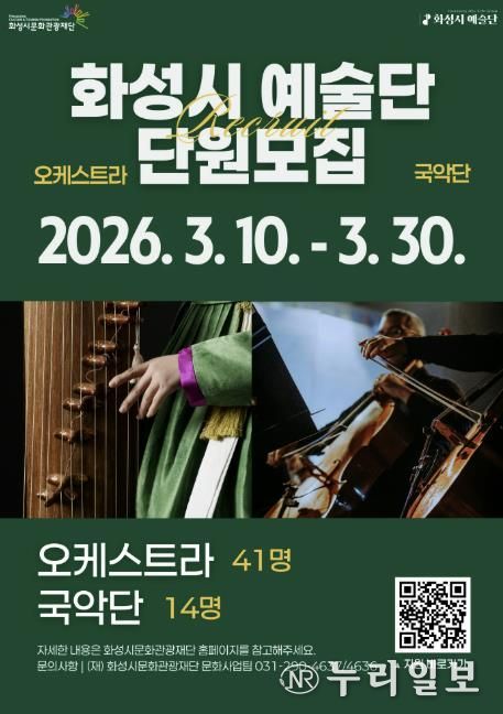 (누리일보) 화성시문화관광재단은 2026년 ‘화성시 예술단’을 이끌어갈 오케스트라 및 국악단 단원을 모집한다.