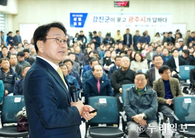 (누리일보) 광주광역시는 10일 강진군에서 ‘광주·전남 통합 강진군 상생토크’를 열고, 통합 이후 강진 발전 방향과 상생 협력 방안에 대해 군민들과 의견을 나눴다.