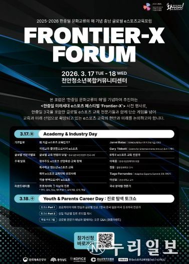 (누리일보) 충남콘텐츠진흥원은 오는 3월 17일 ~ 18일 천안청소년복합커뮤니티센터에서 충남 글로벌 이스포츠 교육 포럼을 개최한다고 밝혔다.
