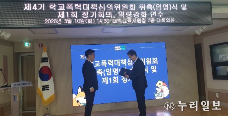 (누리일보) 태백교육지원청은 3월 10일 태백교육지원청 제4기 학교폭력대책심의위원회 위촉(임명)장 수여식 및 학교폭력대책심의위원 역량강화 연수를 실시했다.
