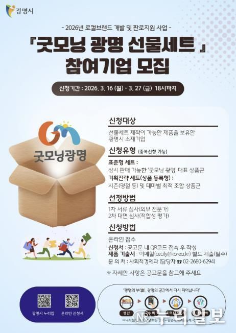 모집 대상은 선물세트 제작이 가능한 제품을 보유한 광명시 소재 중소기업, 사회적경제기업, 소상공인 등이다. 광명에서 생산·제조한 생활용품, 식품, 공예품 등 특판이 가능한 전 품목이 해당하며, 선정된 제품은 ‘굿모닝광명’ 브랜드 로고와 전용 패키지를 입혀 세련된 세트 상품으로 재탄생한다.