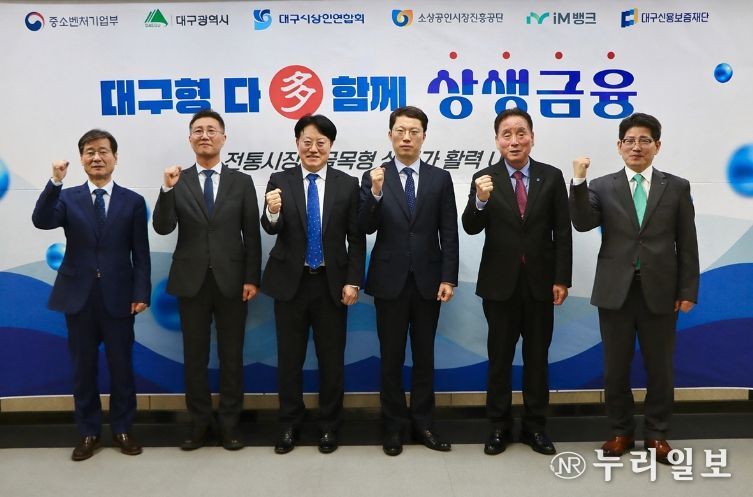 협약식에는 정기환 대구·경북지방중소벤처기업청장, 박기환 대구광역시 경제국장, 박진우 대구신용보증재단 이사장, 김현석 소상공인시장진흥공단 대구경북지역본부장, 류희장 iM뱅크 여신그룹장, 박재청 대구시상인연합회 회장 등이 참석해 정책자금·보증·금융지원 및 경영지원 등을 연계한 협력 금융지원 모델 구축에 힘을 모으기로 했다.