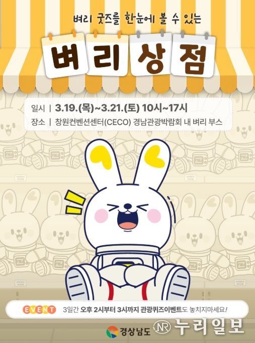 (누리일보) 경상남도는 3월 19일부터 21일까지 3일간 창원컨벤션센터(CECO)에서 열리는 ‘2026 경남관광박람회’에 참가해 도 홍보캐릭터 ‘벼리’를 주인공으로 한 팝업스토어 ‘벼리 상점’을 선보인다.