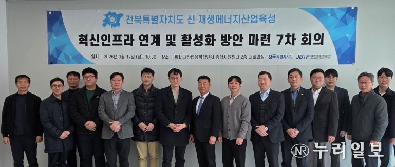 (누리일보) 전북특별자치도는 17일 새만금 에너지산업융복합단지 종합지원센터 대회의실에서 ‘에너지 분야 혁신인프라 연계 및 활성화 회의’를 개최하고 도내 에너지 분야 혁신기관과 함께 협력사업 확대 및 신규사업 발굴 방안을 논의했다.