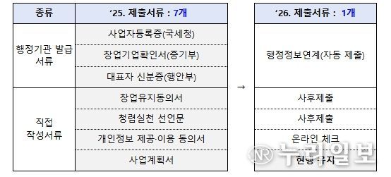 행정정보 연결로 사업자등록증, 재무제표 등 행정서류는 자동수집한다. 개인정보제공동의서 등은 온라인 체크로 대체한다. 또한, 기업 심사에 불필요한 서류는 폐지하거나 선정된 기업만 제출한다. 사업계획서 제한 분량도 평균 14장에서 9.4장까지 30% 이상 감축할 계획이다.