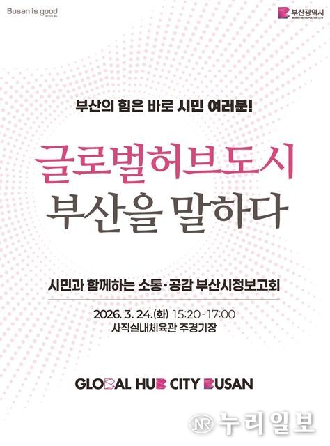 (누리일보) 부산시는 오는 24일 오후 3시 20분 사직실내체육관 주경기장에서 시민과 지역 주요 인사 등이 참석한 가운데 '글로벌허브도시 부산을 말하다' 시정보고회를 개최한다고 밝혔다.