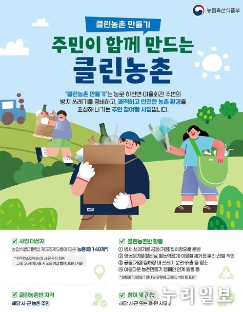 (누리일보) '클린농촌 만들기'는 농로·하천변·마을회관 주변의 방치 쓰레기를 정비하고, 쾌적하고 안전한 농촌 환경을 조성해 나가는 주민 참여형 사업입니다.