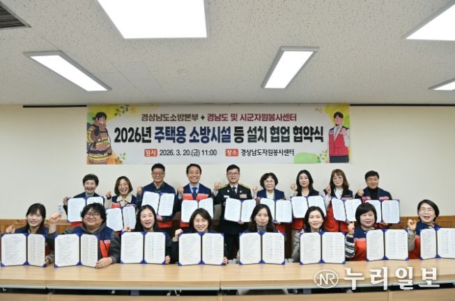 (누리일보) 경상남도 소방본부는 20일 오전 11시 경상남도자원봉사센터와 도내 18개 시군 자원봉사센터가 참여한 가운데 주택용 소방시설 보급 협력을 위한 업무협약을 체결했다고 밝혔다.