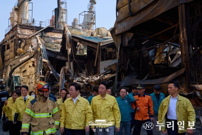 (누리일보) 이재명 대통령은 21일 오후, 20일 대전 대덕구에서 발생한 안전공업 화재 현장을 찾아 피해 상황과 구조활동 전반을 점검하고, 유가족들의 목소리를 청취했다.