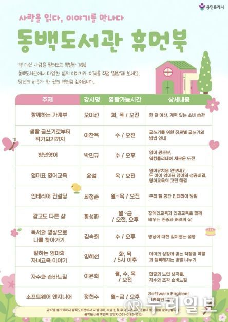 (누리일보) 용인특례시 동백도서관은 오는 4월 1일부터 ‘휴먼북’ 프로그램을 정비해 본격 운영한다고 23일 밝혔다.