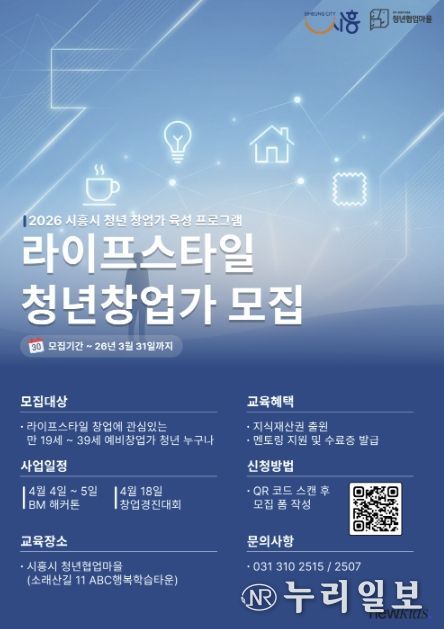 (누리일보) 시흥시는 ‘2026 청년 창업가 육성 프로그램’의 일환으로 라이프스타일 분야 예비 청년창업가를 대상으로 실전형 창업 프로그램인 ‘창업 해커톤’과 ‘창업 경진대회’를 운영하고, 오는 3월 31일까지 참가자 30명을 모집한다.