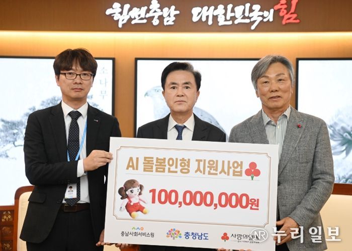 (누리일보) 충남도는 23일 충남사회복지공동모금회로부터 고독사 예방을 위한 인공지능(AI) 돌봄인형 지원 사업비 1억원을 기탁받았다.