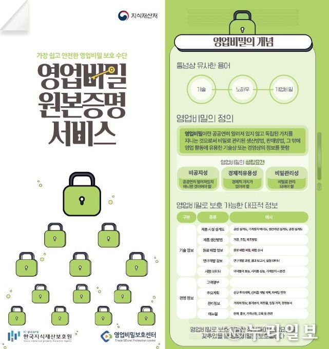 영업비밀 원본증명 서비스는 영업비밀을 보유하고 있는 기업에서 원본 전자파일의 고유값을 원본증명기관에 등록하여 분쟁 발생 시 영업비밀의 존재 여부와 보유 시점을 입증하도록 하는 서비스다.