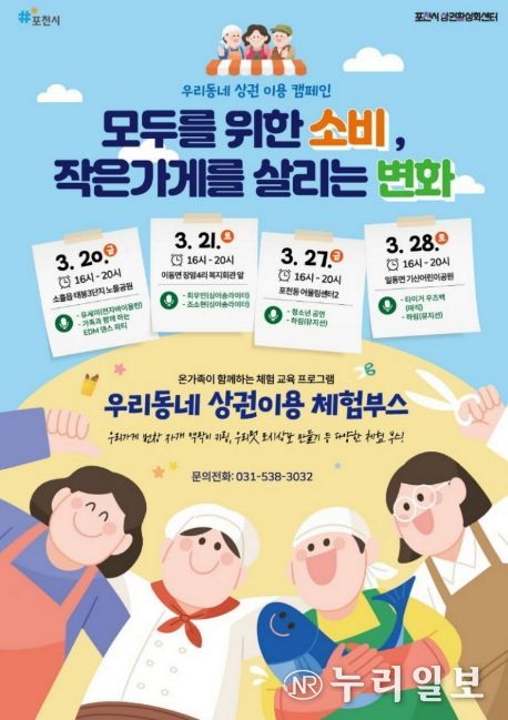 (누리일보) 포천시는 오는 27일 포천동 어울림센터2와 28일 일동면 기산어린이공원에서 지역상권 활성화를 위한 ‘우리동네 상권이용 캠페인’을 개최한다.