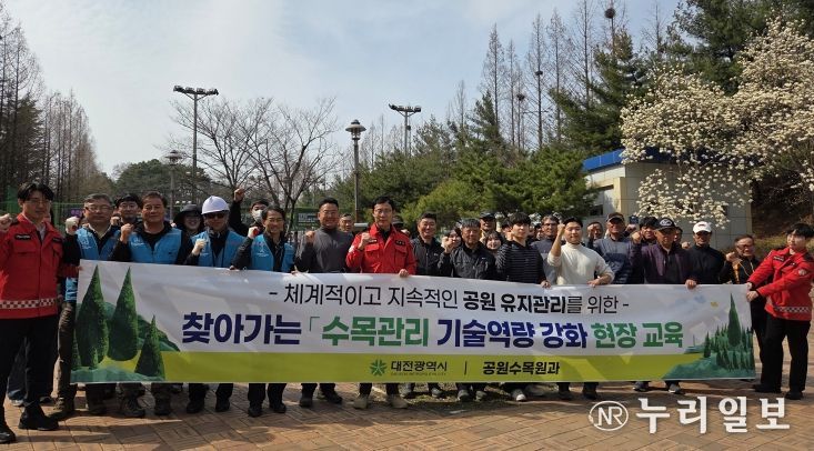 (누리일보) 대전시는 24일 송촌체육공원에서 담당 공무원과 현장관리 인력을 대상으로 시민들에게 쾌적한 녹지환경을 제공하기 위한‘수목관리 기술역량 강화 현장교육’을 실시했다.