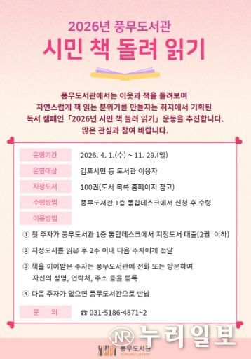 (누리일보) 김포시 풍무도서관은 오는 4월부터 ‘2026년 시민 책 돌려 읽기’ 독서 릴레이를 운영한다.