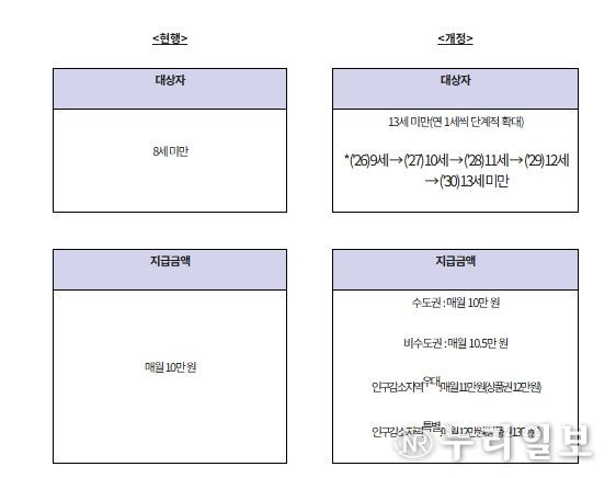 시행령과 함께 개정된 '아동수당법' 시행규칙에는 아동수당 대상 확대에 따라 아동수당 관련 정보 제공 대상을 8세 미만 아동의 보호자에서 13세 미만 아동의 보호자로 단계적으로 확대되는 내용이 담겼다(시행규칙 제3조).