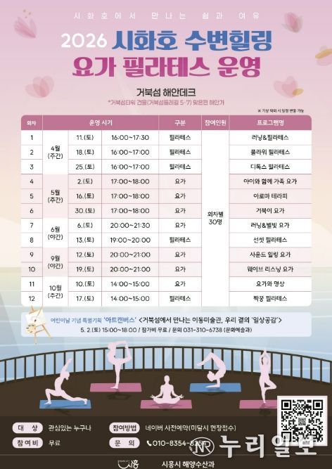 (누리일보) 시흥시는 시화호 수변의 자연경관을 활용해 시민들에게 일상의 여유와 휴식을 제공하는 ‘시화호 수변 힐링 프로그램’을 오는 4월 11일부터 10월 17일까지 운영한다.