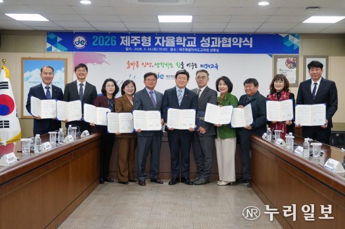 (누리일보) 제주특별자치도교육청은 24일 도교육청 상황실에서 2026학년도 신규 지정 제주형 자율학교 10개교(초 10개교)와 성과 협약을 체결했다.
