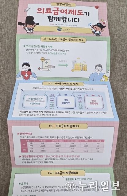 (누리일보) 의정부시는 의료급여 제도에 대한 이해를 돕고 적정 이용을 유도하기 위해 6단 병풍접지 형식의 홍보지를 제작했다고 25일 밝혔다.