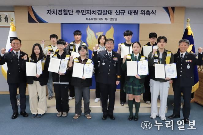 (누리일보) 제주특별자치도 자치경찰단은 3월 28일 다양한 세대의 참여와 미래 치안인재 양성 및 지역사회 치안 감수성 제고를 위해 청소년 10명을 주민자치경찰대원으로 위촉했다고 밝혔다.