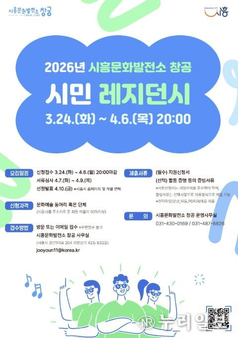 (누리일보) 시흥시는 시흥문화발전소 창공에서 2026년 시민 레지던시에 참여할 문화예술 동아리 및 단체를 4월 6일까지 모집한다고 밝혔다.