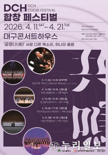 (누리일보) 대구콘서트하우스는 대구·경북을 대표하는 전문 합창단이 모여 교류하는 ‘2026 DCH 합창 페스티벌’을 올해 처음으로 개최한다.