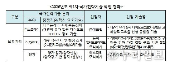 (누리일보) 과학기술정보통신부와 한국과학기술기획평가원(원장 직무대행 황지호,)은 ‘2026년도 제1차 국가전략기술 확인 신청’에 대해 총 3건의 기술(디스플레이, 이차전지, 양자 분야)이 국가전략기술에 해당하는 것으로 확인했다.