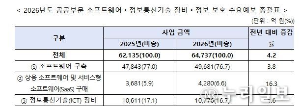 (누리일보) 과학기술정보통신부는 3월 31일 2026년 공공부문 소프트웨어(SW)·정보통신기술 장비·정보 보호 수요예보 결과를 발표했다.