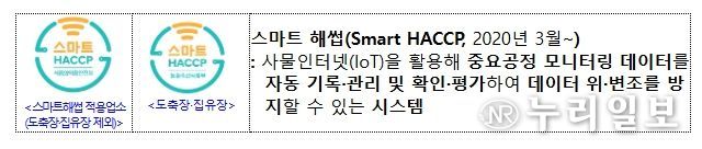 (누리일보) 농림축산식품부와 식품의약품안전처는 스마트 해썹 제도를 도축장과 집유장까지 확대 적용할 수 있도록 '식품 및 축산물 안전관리인증기준' 고시를 3월 31일 일부 개정했다고 밝혔다.