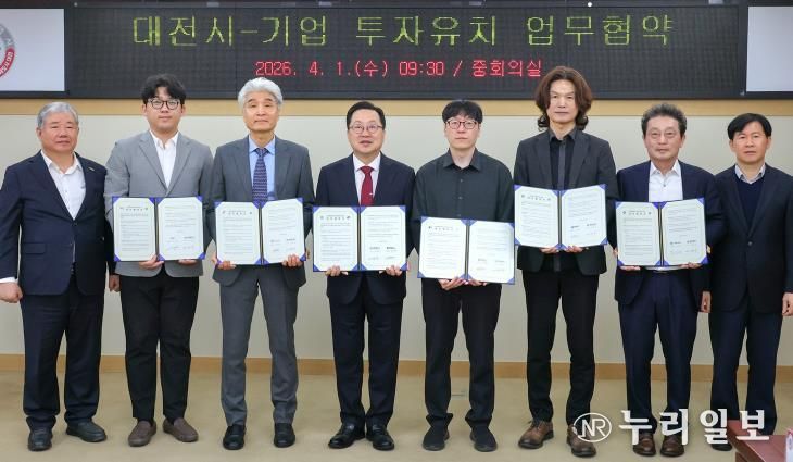 (누리일보) 대전시는 1일 시청 중회의실에서 국내 유망기업 5개 사와 총 550억 원 규모의 신규 투자와 대전 이전에 대한 업무협약(MOU)을 체결했다.