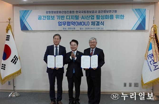 (누리일보) 강원정보문화산업진흥원과 한국국토정보공사 공간정보연구원이 공간정보 기술과 디지털·AI 산업의 융합을 통한 지역경제 활성화와 관련 산업 진흥을 위해 업무협약을 체결했다. 이번 협약은 지역 중심의 공간정보 기반 디지털·AI 산업 활성화를 위한 협력체계를 확립하고, 양 기관의 전문성과 역량을 연계하기 위해 추진됐다.