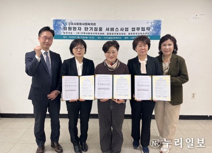 (누리일보) 구리시종합사회복지관은 3월 30일 구리시장기요양기관협회와의 협력을 바탕으로 ㈜가족사랑재가복지센터, 엘림재가복지센터, 효마중재가복지센터 등 3개 기관과 ‘퇴원 환자 단기 집중 서비스’ 업무협약을 체결했다.