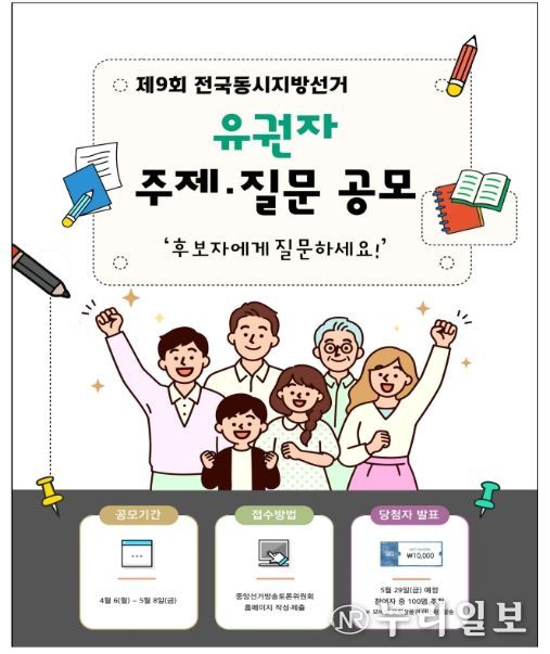 (누리일보) 중앙선거방송토론위원회는 제9회 전국동시지방선거 후보자토론회에서 토론주제와 질문사항 선정에 활용하기 위해 4월 6일부터 ‘유권자 주제·질문 공모’를 실시한다고 밝혔다.