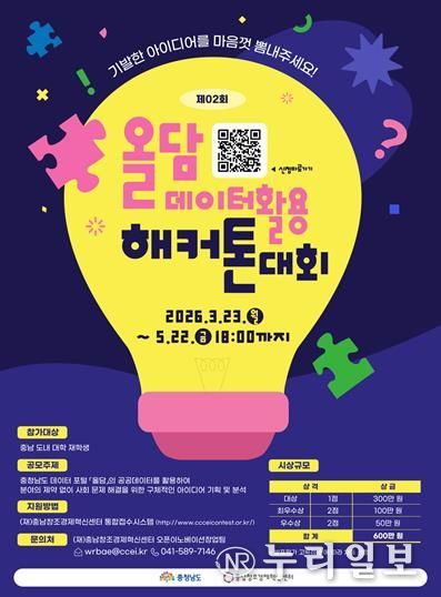 (누리일보) 충남창조경제혁신센터는 충남도내 대학 재학생을 대상으로 공공데이터를 활용한 창의적 아이디어 발굴을 위한 '제2회 올담 데이터 활용 해커톤' 참가자를 오는 5월 22일까지 모집한다고 밝혔다.
