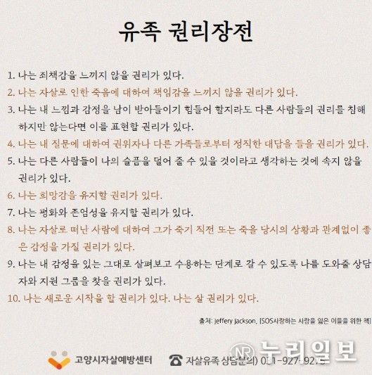 이에 센터는 자살유족을 위한 애도상담, 애도지원 프로그램, 자조모임 운영, 치료비 지원 연계 등 다양한 지원사업을 추진하고 있다.