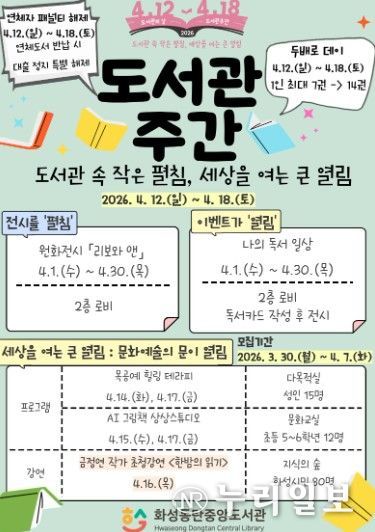 (누리일보) 화성동탄중앙도서관은 지난해 11월 3일 개관 이후 처음 맞이하는 도서관주간을 기념해 시민들이 다양한 독서·문화생활을 즐길 수 있도록 도서관주간 특별 프로그램을 운영한다고 밝혔다.