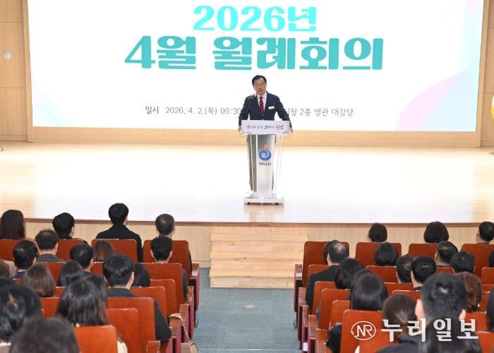 (누리일보) 하남시는 2일 시청 별관 대강당에서 직원과 시민들이 참석한 가운데 ‘2026년 4월 월례회의’를 개최했다.